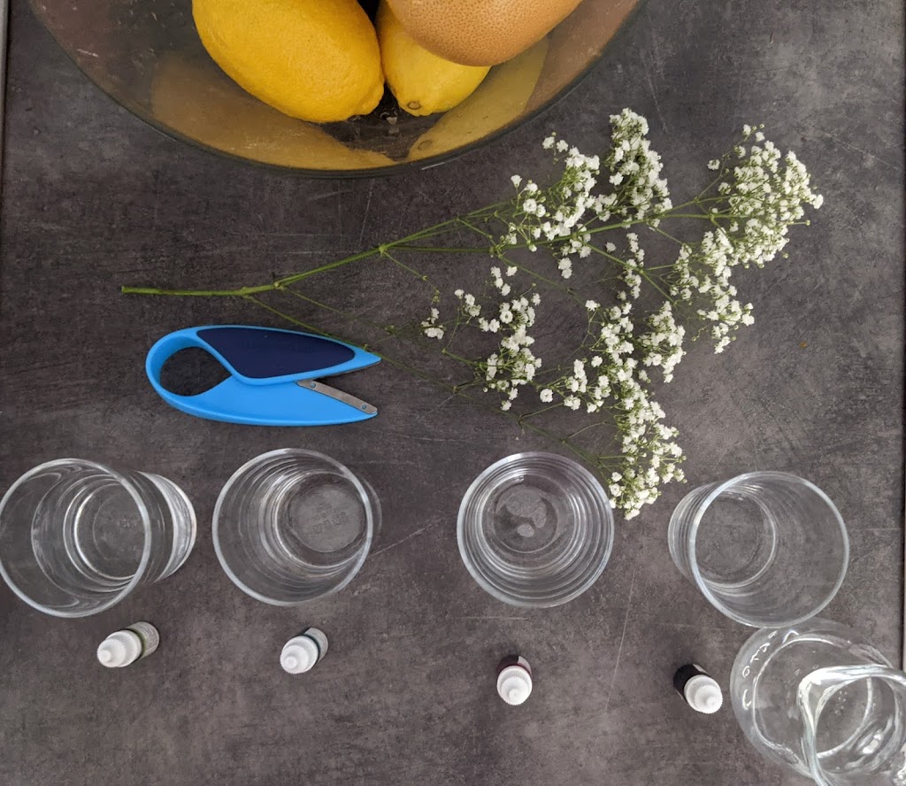 We had these beautiful tiny white flowers (I think they’re called baby’s-breath) and I asked E. if she wants to put them in coloured water. She was excited when I told her that something will happen to the colour of the flowers. I set up everything (glasses, food colouring, pitcher, scissors, and flowers) and she…